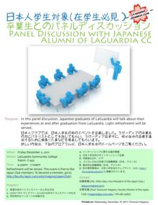 - Description: In this panel discussion, Japanese graduates of LaGuardia will talk about their experiences at and a0er graduation from LaGuardia. Light refreshment will be served.
