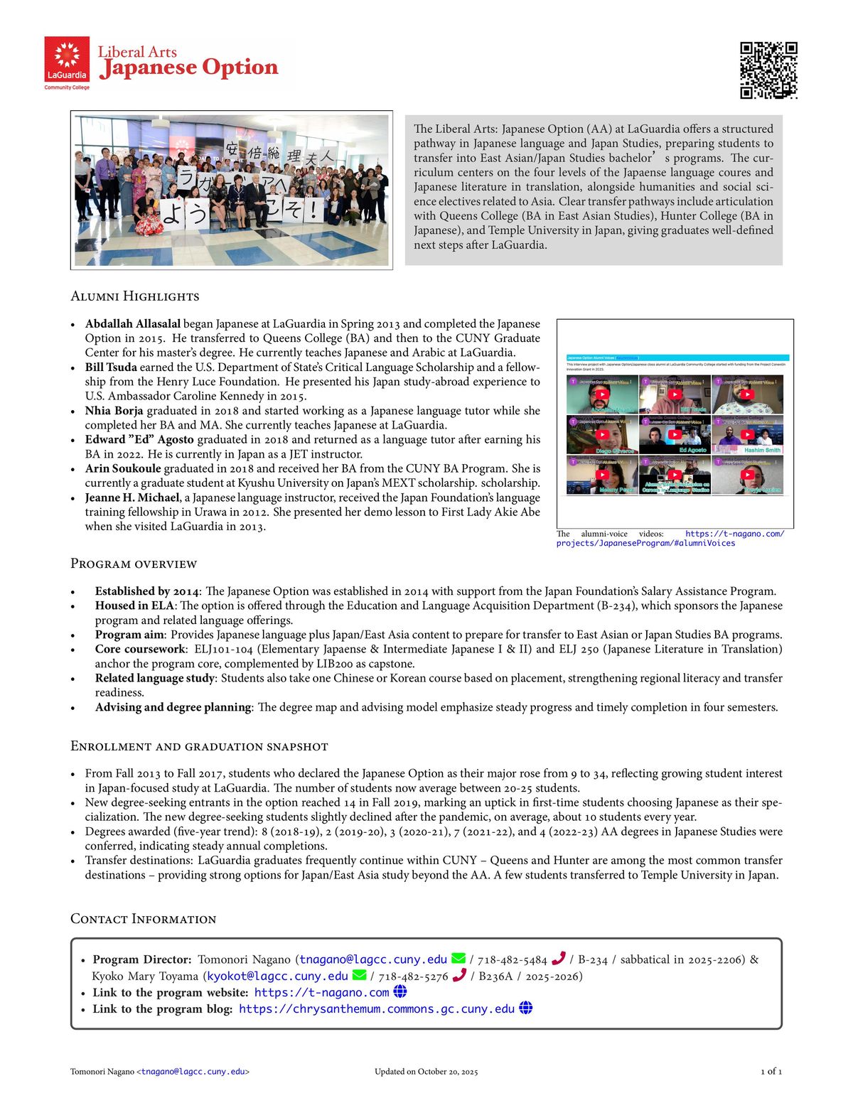 Japanese Option Profile: A one-page introduction to the Japan Studies (Japaense Option) program at LaGuardia Community College.
